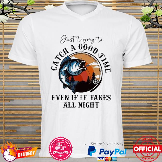 Buy this shirt: https://breakingshirt.com/product/fishing-just-trying-to-catch-a-good-time-even-if-it-takes-all-night-shirt/